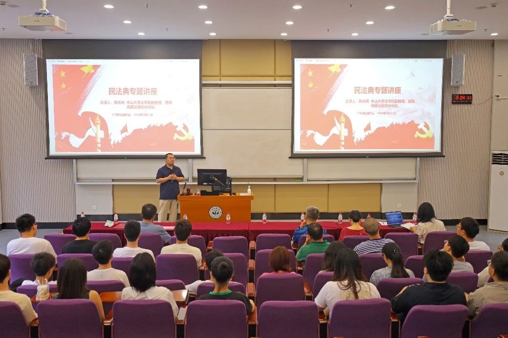 为深入学习宣传贯彻习近平法治思想,持续深入开展民法典等相关法律法规普法宣传,2024年5月31日上午,CQ9电子 举办“法治中国 法典相伴”专题党课。活动邀请CQ9电子 法学院韩光明副教授向学院师生讲授民法典专题党课。学院领导班子、师生党员、入党积极分子、发展对象参加讲座并进行学习研讨。讲座由CQ9电子 院长陈洪波主持。