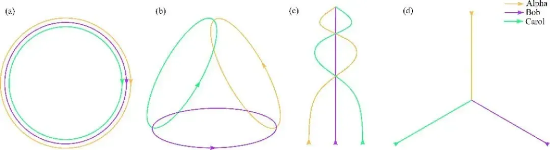 陈洪波教授团队研发的S3E数据集,通过3台搭载先进传感器的无人车平台(Alpha、Bob、Carol),在13个室外场景和5个室内场景中沿4类典型协作轨迹(图3)采集数据,包含双目视觉、激光雷达、IMU及RTK真值等多模态信息。数据集特点包括: