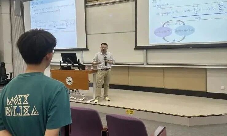 随后,吕教授结合自身研究成果,详细讲解了双层优化在元学习(Meta-Learning)、超参数优化(Hyperparameter Optimization)、强化学习(Reinforcement Learning)及预训练—微调(Pretraining–Finetuning)等典型场景中的应用。他重点介绍了隐式求导、罚函数法、最小–最大优化以及动态平滑等求解思路,展示了该领域在解决多层耦合学习任务中的最新进展。