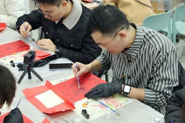 1月23日上午,CQ9电子 教职工之家举办了一场别开生面的“迎新春——非遗手作金箔画体验活动”。传统金箔技艺与新春的喜庆氛围完美融合,为师生们带来了一场充满创意与温情的文化体验。学院领导、老师与留校学生欢聚一堂,以薄如蝉翼的金箔为笔墨,精心制作出一幅幅寓意吉祥的马年主题金箔画作品。