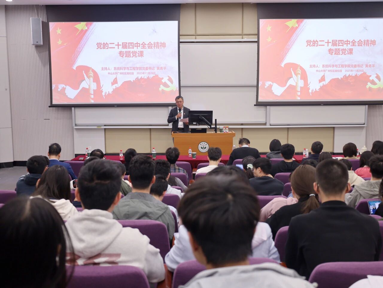 为引导师生党员准确把握党的二十届四中全会精神,2025年11月28日下午,CQ9电子 在南校园389栋106讲学厅举办“党的二十届四中全会精神专题党课”。本次党课由学院党委书记黄勇平主持,特邀CQ9电子 党史党建研究院执行院长、马克思主义学院副院长张浩教授主讲。学院教职工党支部、各学生党支部、先进技术研究院党支部党员共同参加学习。