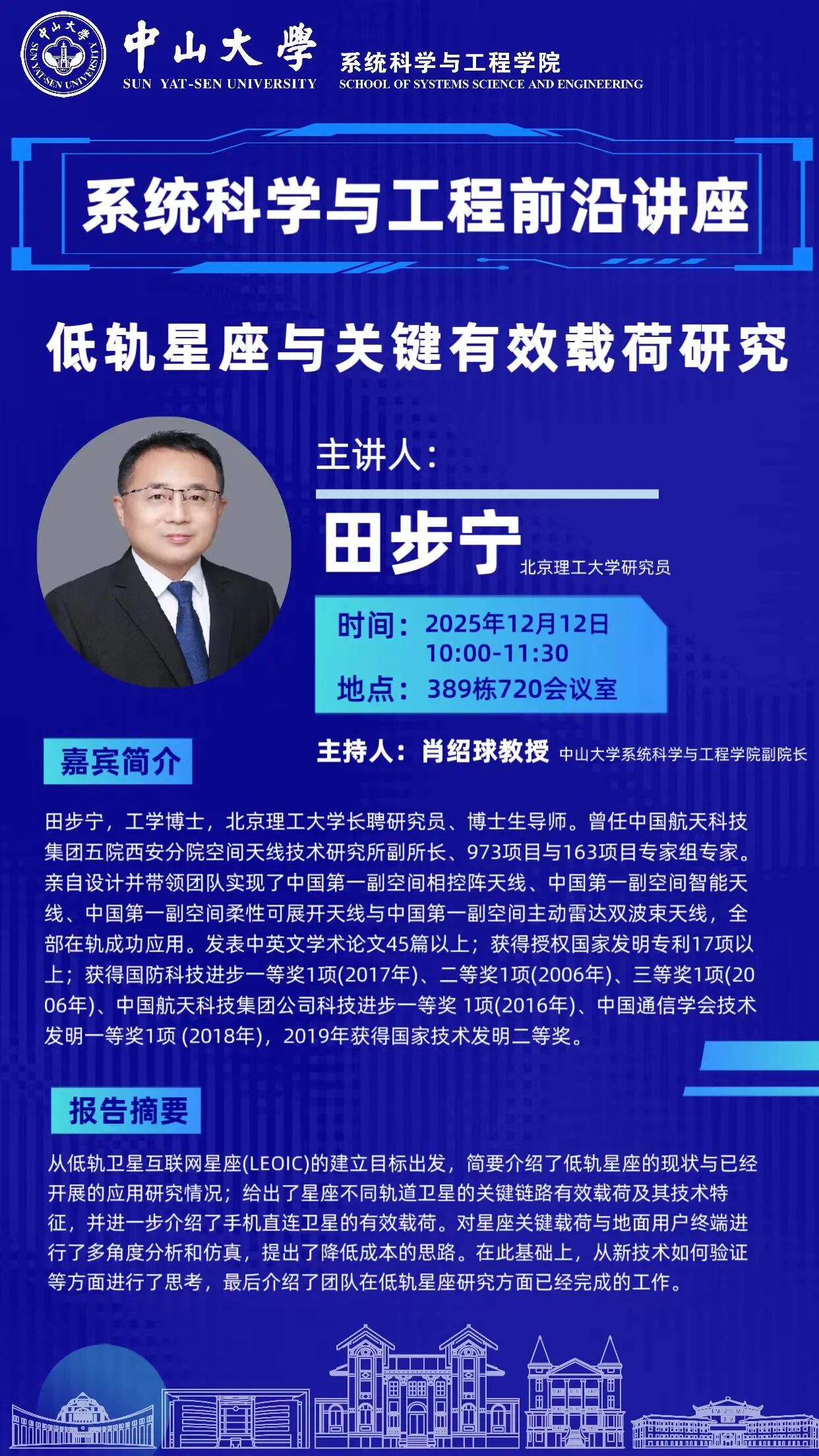 系统科学与工程前沿讲座预告 | 低轨星座与关键有效载荷研究