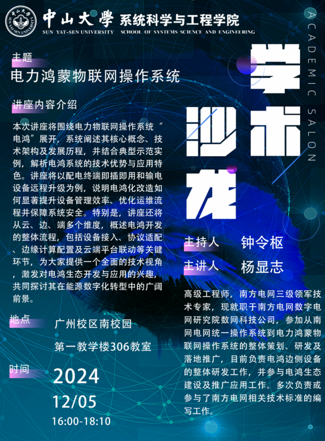 SSE学术沙龙预告 | 电力鸿蒙物联网操作系统