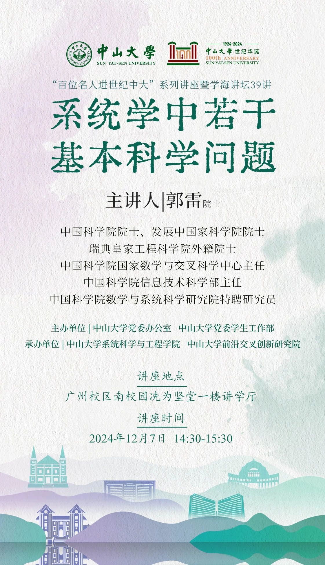 讲座预告 | “百位名人进世纪中大”系列讲座暨学海讲坛第39讲