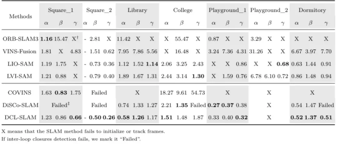 全链条基准验证:提供ORB-SLAM3、VINS-Fusion等单机算法及COVINS、DCL-SLAM等协同算法的基线性能评估(表1),首次实现跨场景、跨平台算法对比。