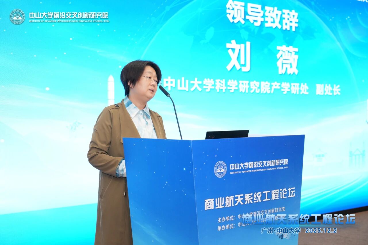 随后,科学研究院产学研处刘薇副处长在致辞中表示,当前我国商业航天正步入高速发展期,产学研深度融合是高质量发展的核心动力。期待本次论坛能够成为校企合作的桥梁,推动高校学科发展与产业实际需求精准对接,构建“共建平台、共研项目、共享成果”的新模式,为商业航天发展注入持续动力。