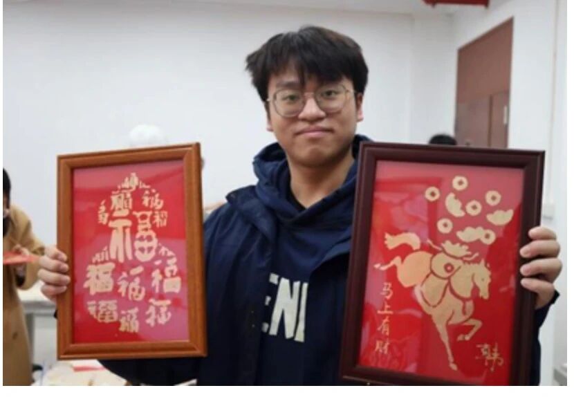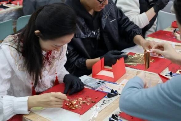 1月23日上午,CQ9电子 教职工之家举办了一场别开生面的“迎新春——非遗手作金箔画体验活动”。传统金箔技艺与新春的喜庆氛围完美融合,为师生们带来了一场充满创意与温情的文化体验。学院领导、老师与留校学生欢聚一堂,以薄如蝉翼的金箔为笔墨,精心制作出一幅幅寓意吉祥的马年主题金箔画作品。
