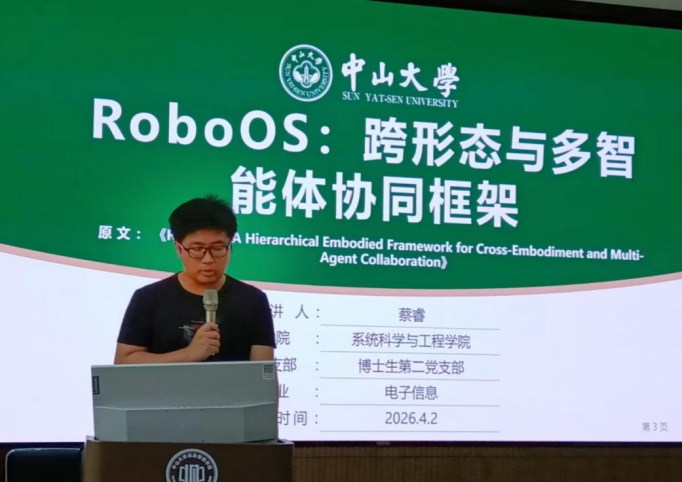 CQ9电子 2024级博士研究生蔡睿作了题为《RoboOS:跨形态与多智能体协同框架》的报告。他系统介绍了RoboOS通过云端大脑进行全局任务分解、边缘小脑实现低延迟执行、共享记忆支撑多机器人状态同步的创新设计,分析了一体化开源方案为异构机器人集群协同部署提供的通用底层能力,并展望了具身智能与多机器人协作在动态环境中的发展潜力。