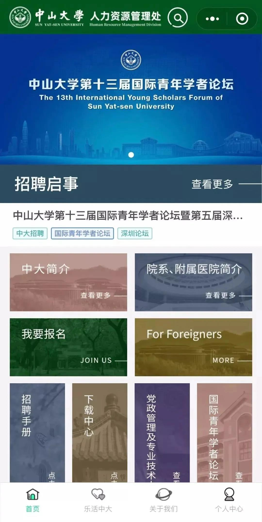 进入“中大人才招聘”小程序主页